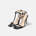 Sandals with a 9cm heel and a thin T-strap that gives your feet a relaxed and elegant look. The square toe gives it a trendy look, making it an excellent pair that can be used in a wide range of situations, from daily wear to occasions.